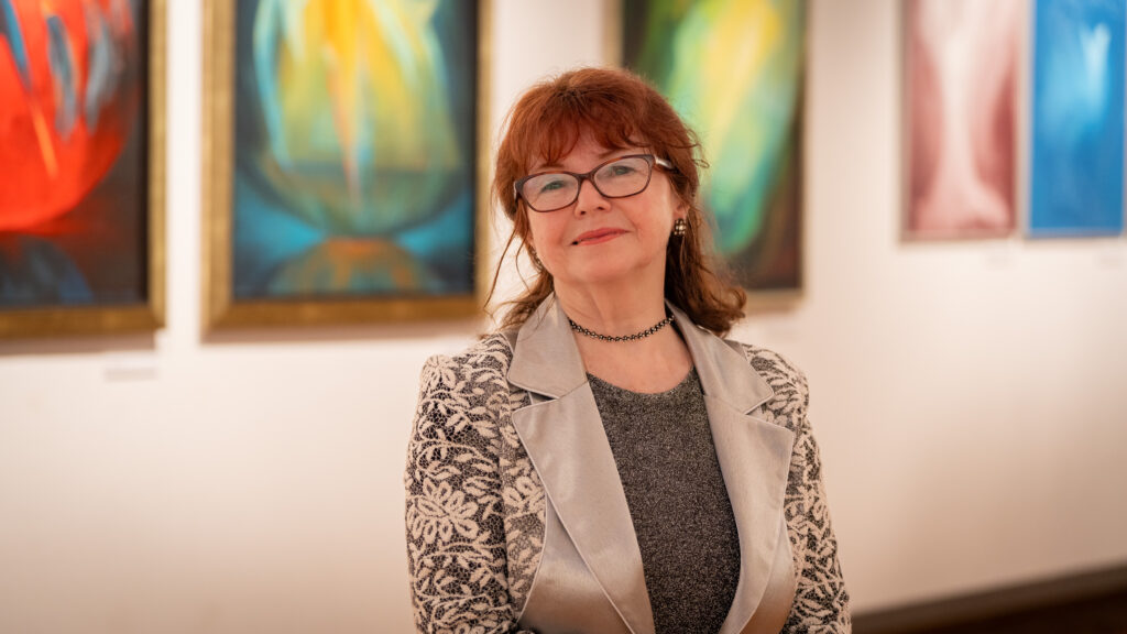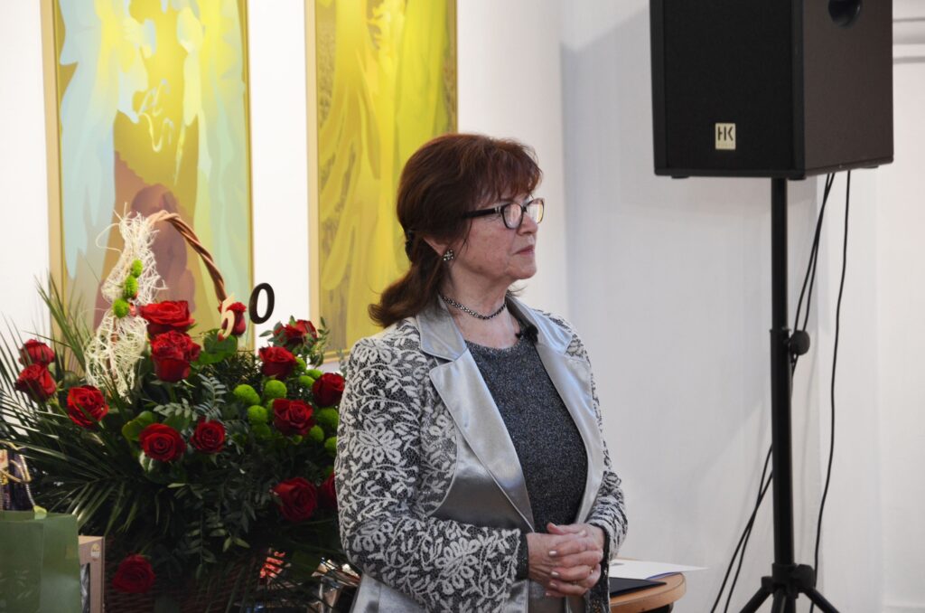 Urodzona w Częstochowie absolwentka wrocławskiej ASP, od lat związana z Rzeszowem, celebruje 50-lecie pracy twórczej, w której tematyka sakralna była nieprzerwanie wiodącym źródłem inspiracji. Wśród prezentowanych prac znajduje się zarówno malarstwo jak i grafika komputerowa.