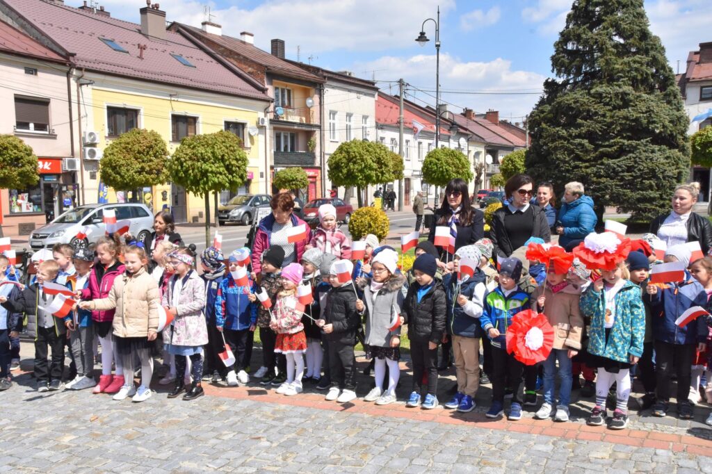 W Sędziszowie Małopolskim dzieci z przedszkoli świętowały dzisiaj Dzień Flagi Narodowej, już kilka dni przed oficjalnym świętem. Przedszkolaki z małymi flagami w rękach przeszły ulicami miasta, aby złożyć wiązanki kwiatów przed pomnikiem 100-lecia niepodległości pod ratuszem.