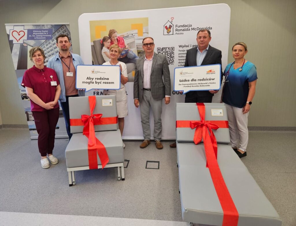 Dwa szpitale w Rzeszowie: Kliniczny Szpital Wojewódzki nr 2 im. Św. Jadwigi Królowej oraz Szpital Specjalistyczny PRO-FAMILIA otrzymały po pięć łóżek dla rodziców, którzy w czasie hospitalizacji swoich dzieci cały czas czuwają przy nich. Łóżka przekazała Fundacja Ronalda McDonalda.