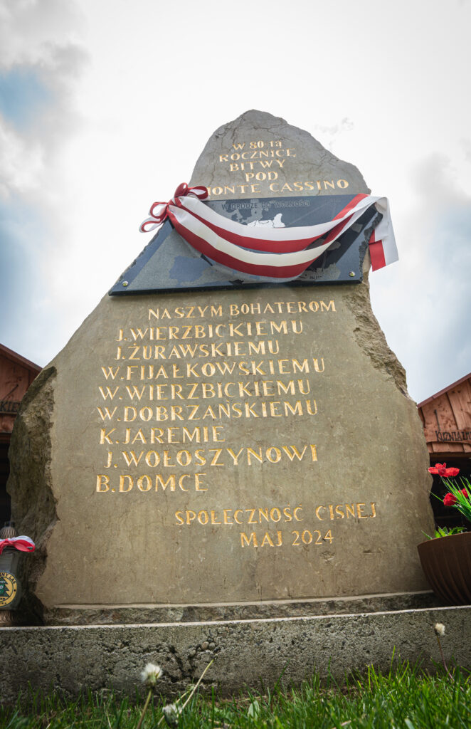 W Cisnej został odsłonięty pomnik poświęcony żołnierzom z tej miejscowości i jej okolic, którzy walczyli w bitwie o Monte Cassino. Umieszczono na nim nazwiska ośmiu związanych z Cisną żołnierzy 2 Korpusu Polskich Sił Zbrojnych na Zachodzie. Dziś (18.05) przypada rocznica zdobycia Monte Cassiono przez polskich żołnierzy.