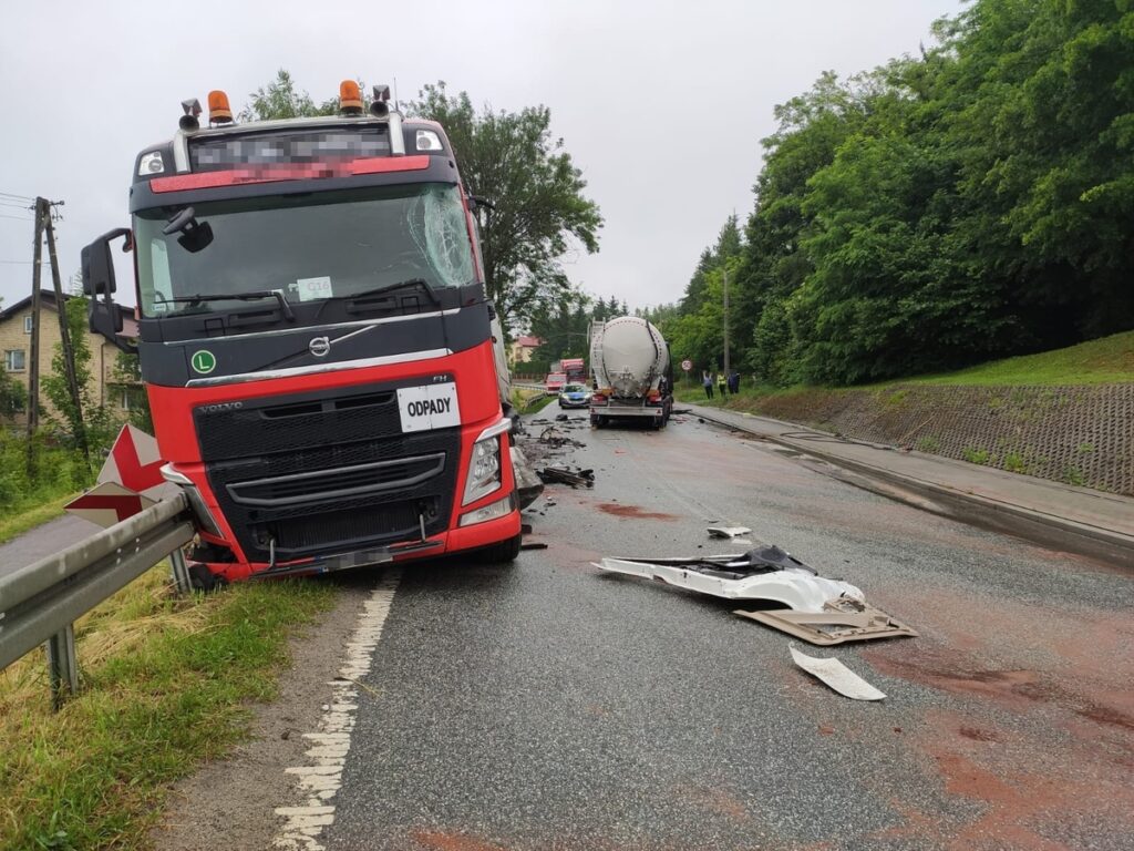 W Zarzeczu na drodze wojewódzkiej nr 992 zderzyły się dwa pojazdy ciężarowe. Do wypadku doszło przed godz. 6:00. Kierujący ciągnikiem siodłowym marki Mercedes z cysterną, jadąc w kierunku Jasła, stracił panowanie nad pojazdem i uderzył w nadjeżdżające Volvo z naczepą.