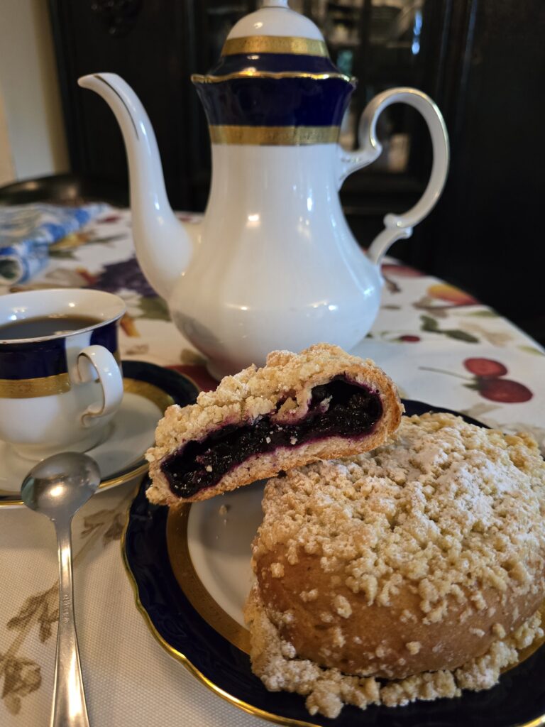 Dziś na talerzu i podniebieniu znajdzie się ciasto z jagodami, nie bez powodu bo nastał czas borówek, a 2 lipca obchodziliśmy Święto Jagodzianki!