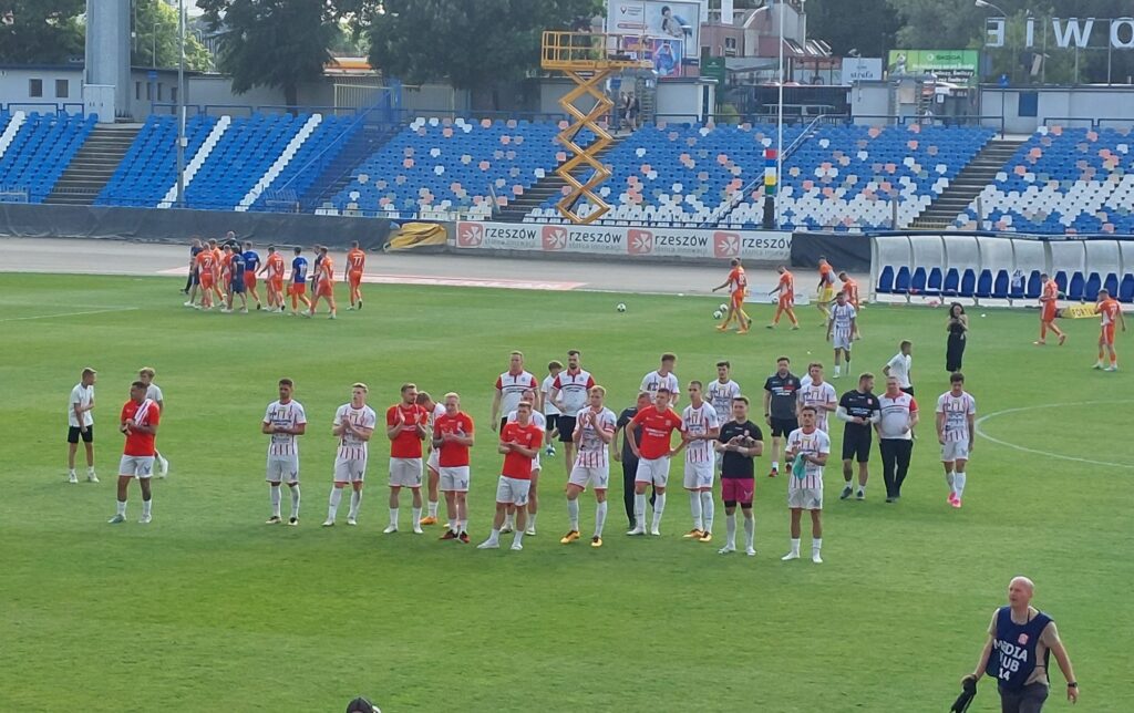 Na pożegnanie z własną publicznością Apklan Resovia w I lidze piłkarskiej przegrała 1-2 z Bruk Bet Termalicą Nieciecza. Zaczęło się od prowadzenia Resovii po golu Kałahura w 17 minucie. Jednak czerwona kartka w 32. minucie za faul obrońcy Resoviii – Hoogenhouta sprawiła, że gospodarze musieli bronić wyniku. Rywale grając w przewadze strzeli dwie bramki w drugiej połowie i wywieźli z Rzeszowa trzy punkty. Trener Bruk-Betu Radoslav Latal cieszył się z wygranej.