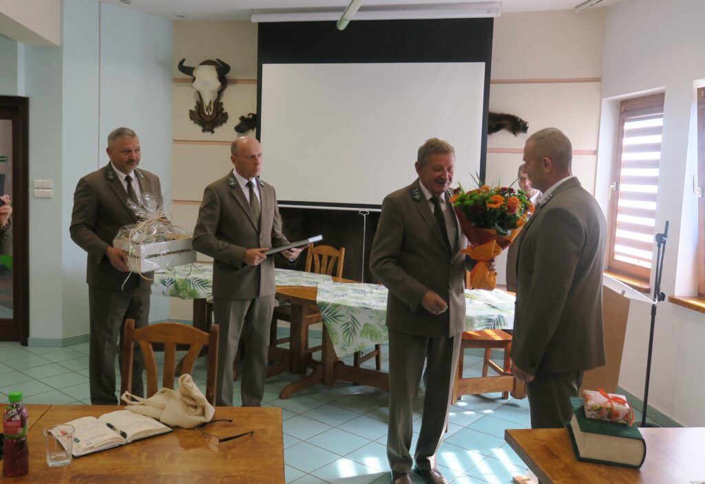 Następnie dyrektor Pigan podziękował swemu poprzednikowi, Januszowi Starzakowi, pełniącemu obecnie funkcję nadleśniczego w Sieniawie. W imieniu nadleśniczych podziękował też Zbigniew Kopczak, honorowy dziekan korpusu nadleśniczych.