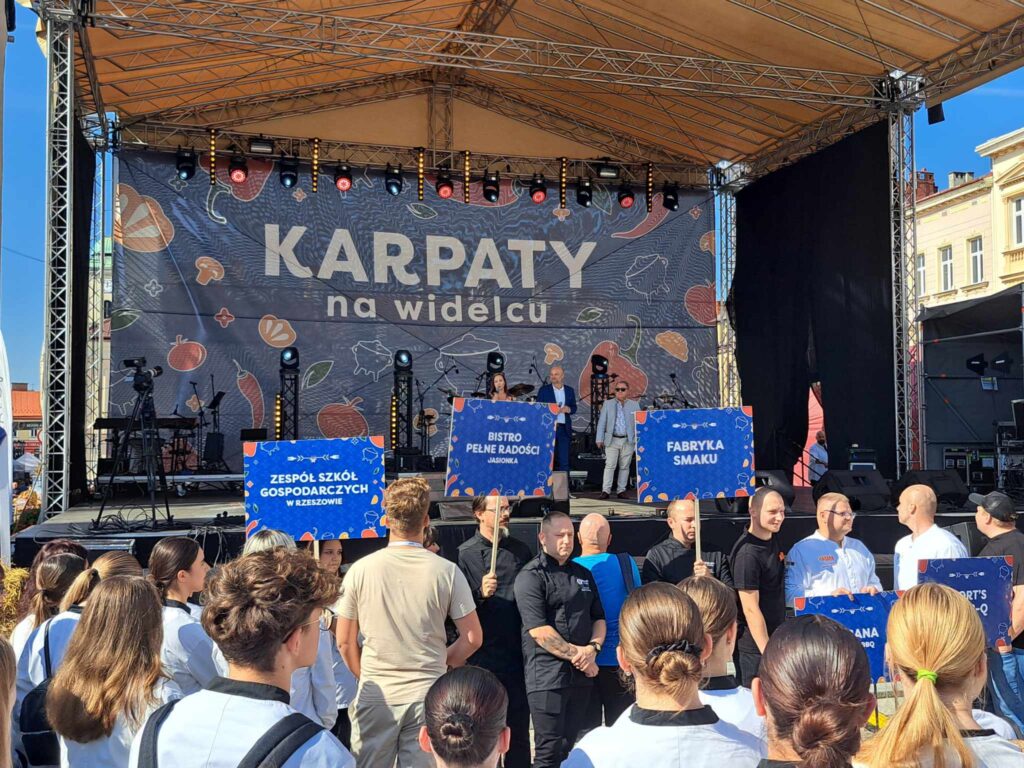Kucharze wyruszyli spod kładki im. WOŚP i przeszli ulicami Rzeszowa na Rynek, gdzie odbyło się uroczyste otwarcie festiwalu Karpaty na widelcu. Ambasadorem i gościem honorowym wydarzenia jest Robert Makłowicz, który opowie o kulinarnych smakach karpat. (początek o 15.00)