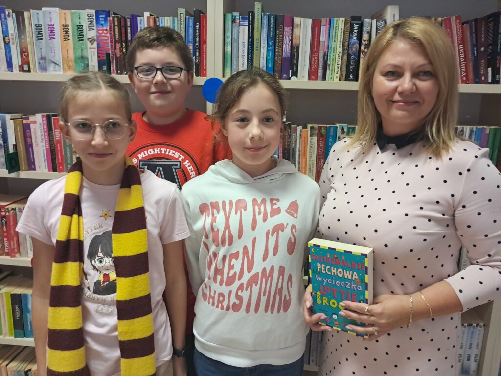 Poznaliście też członków Dyskusyjnego Klubu Książki dla dzieci i młodzieży z filii Miejskiej Biblioteki Publicznej w Łańcucie na Podzwierzyńcu. Ola, Milena i Kacper są w 5 i 6 klasie i bardzo lubią czytanie. Wciągają ich różne gatunki, o których opowiadają. Wszystkim podobają się przygody Lottie Brooks, które opisuje Katie Kirby. Na spotkaniach klubowiczów czyta je na głos koordynator klubu, bibliotekarka Monika Pukacz-Reizer. Wszyscy bawią się bardzo dobrze. Dlatego przygody nastolatki Lotti polecamy i Wam.