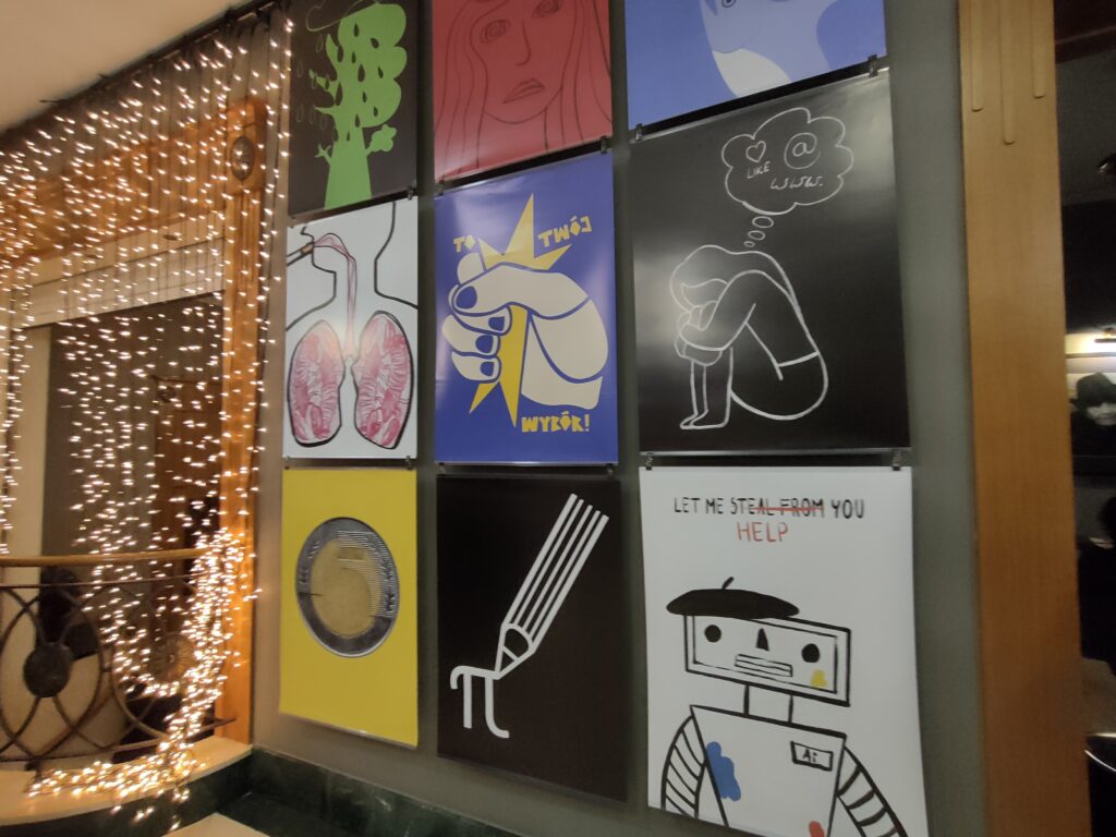 Wybranych zostało 60 plakatów 6 studentów WSIiZ. Autorzy, mimo młodego wieku, mogą pochwalić się licznymi sukcesami. Ich prace były prezentowane na ważnych przeglądach plakatowych, takich jak: Biennale Plakatu w Lublinie, CHEAP STREET POSTER ART, wystawa 1. BISTA współorganizowana przez galerię B.I i BIPB, Międzynarodowe Biennale Plakatu, wystawa konkursu na plakat bezpieczeństwa pracy, Konfrontacje Plakatu Studenckiego, Satyrykom oraz wiele innych.