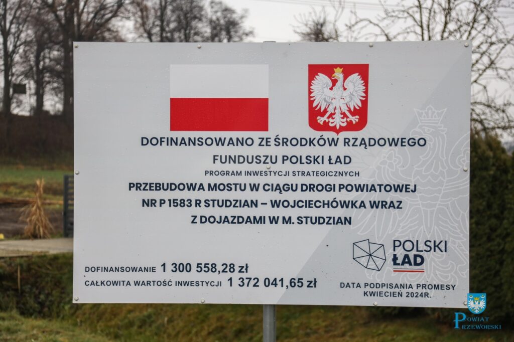 Zakończono przebudowę mostu w Studzianie w gminie Przeworsk. Realizowana była w ramach inwestycji w ciągu drogi powiatowej Studzian – Wojciechówka.