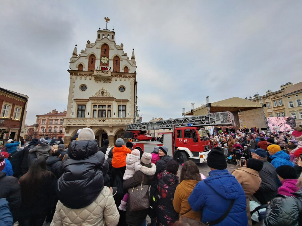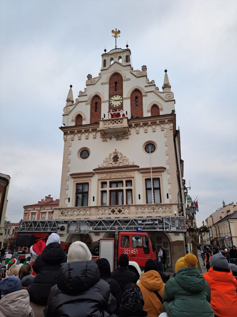 Mikołaj ukazał się dopiero na rzeszowskim Rynku. Strażacy wraz z maskotką Marshalla pomogli mu zejść z wieży rzeszowskiego ratusza, wykorzystując przy tym wóz strażacki. Po udanej akcji ratunkowej mikołaj zaczął rozdawać prezenty