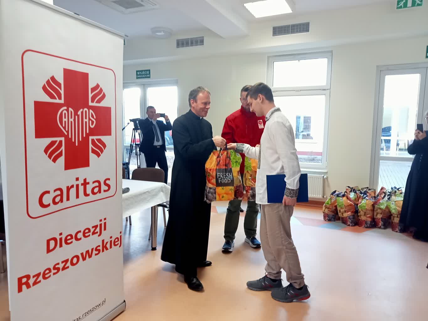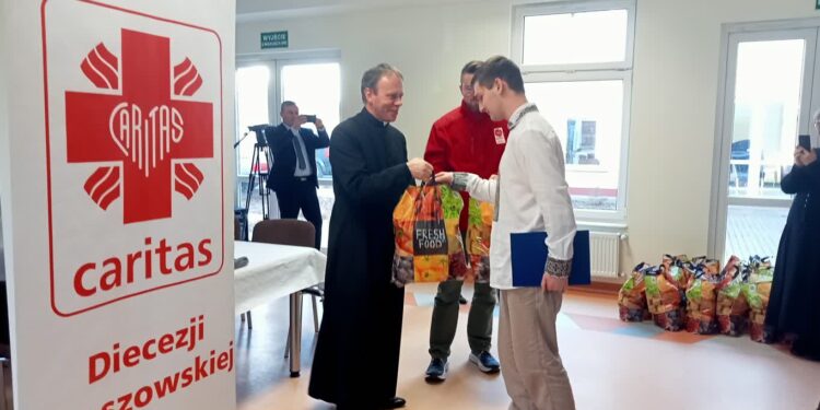 Młodzi ludzie z Ukrainy, Białorusi, Gruzji, Kazachstanu i Turkmenistanu mający polskie korzenie otrzymali dziś (07.02) paczki żywnościowe od Caritas Diecezji Rzeszowskiej. To prawie 30 uczestników kursów przygotowawczych, organizowanych przez Uniwersytet Rzeszowski. Ćwiczą na nich język i poznają naszą kulturę, tak aby poradzić sobie podczas studiów, które zamierzają podjąć. Większość z nich wiąże przyszłość z Polską. Niektórzy mają już tutaj swoich krewnych i chcą być blisko rodziny.