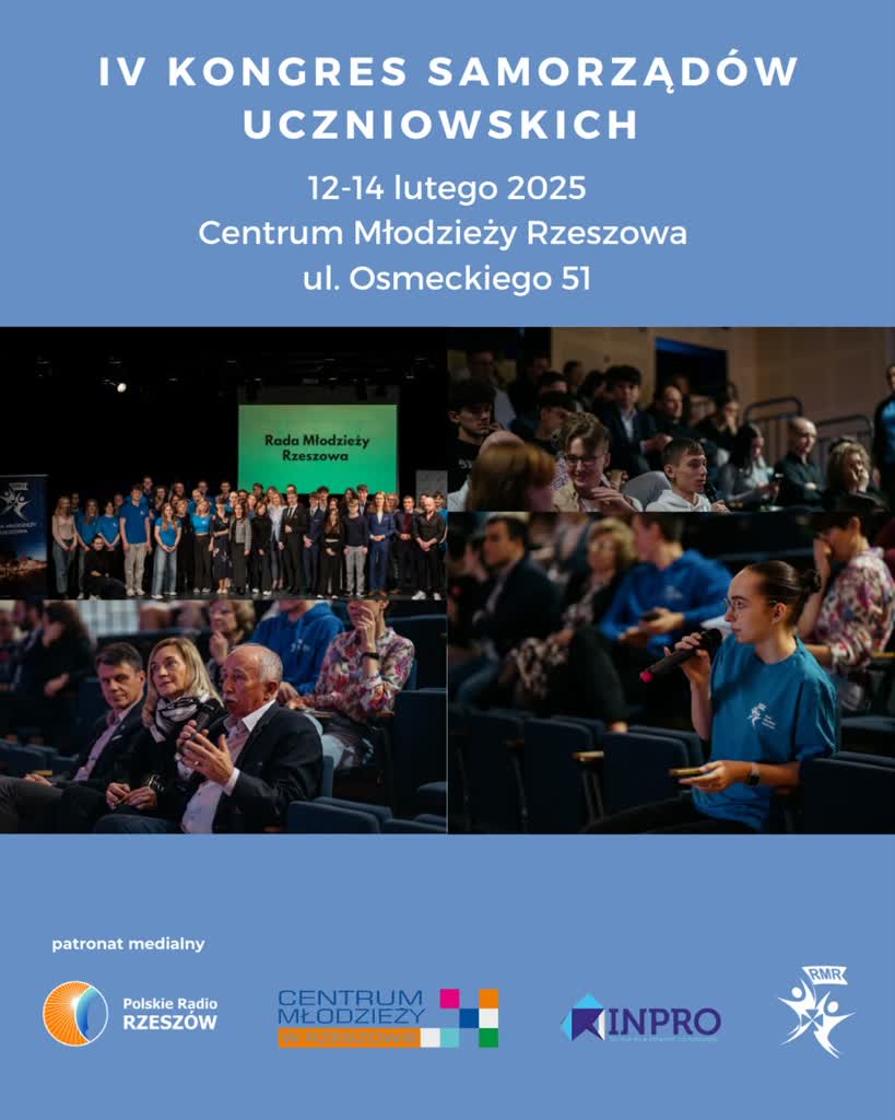 Uczniowie i nauczyciele z 20 rzeszowskich szkół biorą udział w IV Kongresie Samorządów Uczniowskich pod hasłem „Młodość. Miasto. Moc”.