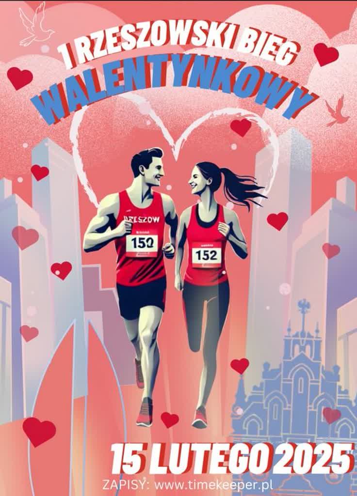 Już dziś (15.02) o godzinie 17:00 rozpocznie się 1 Rzeszowski Bieg Walentynkowy. Biegacze będą mieli do pokonania dystans 5 kilometrów.