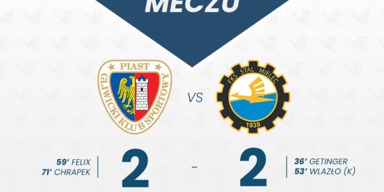 W ekstraklasie piłkarskiej w 22 kolejce Stal Mielec w Gliwicach z Piastem.