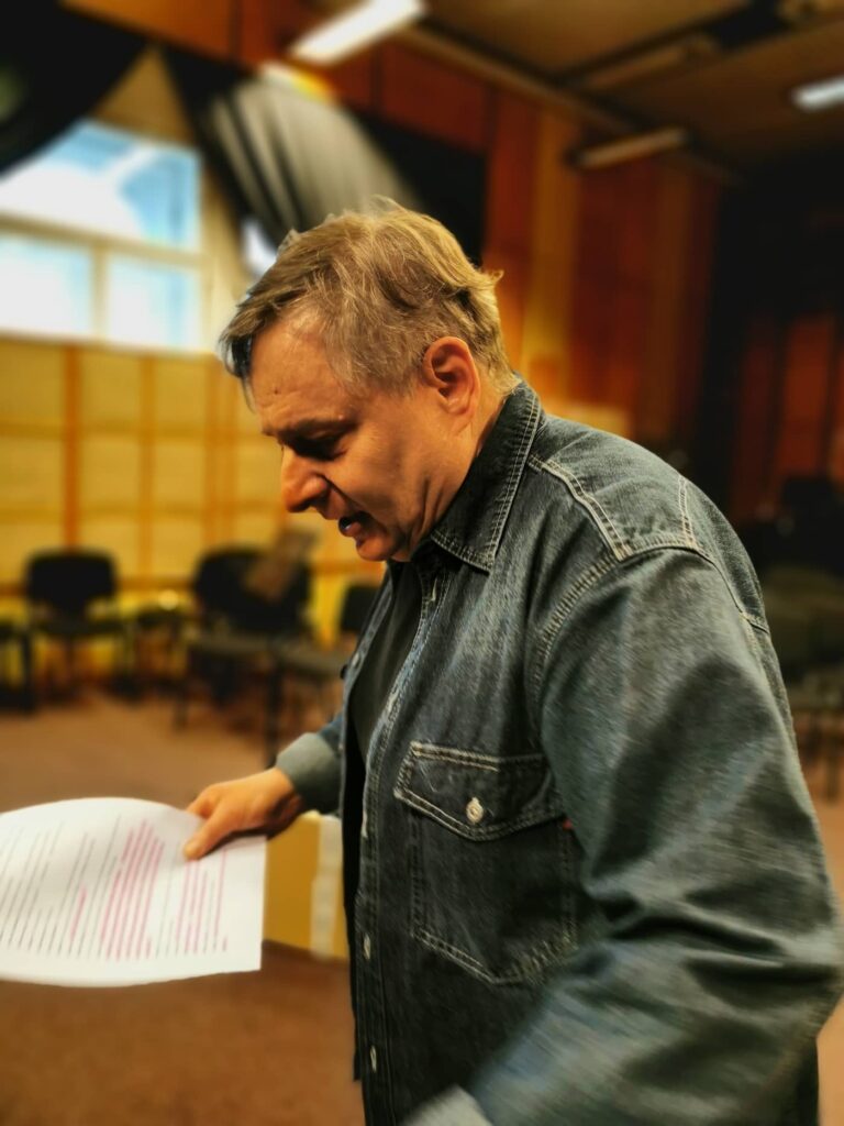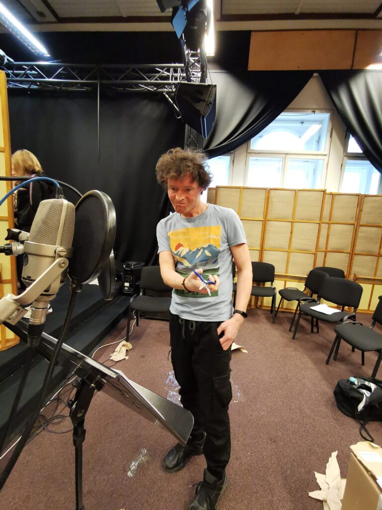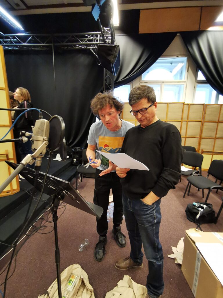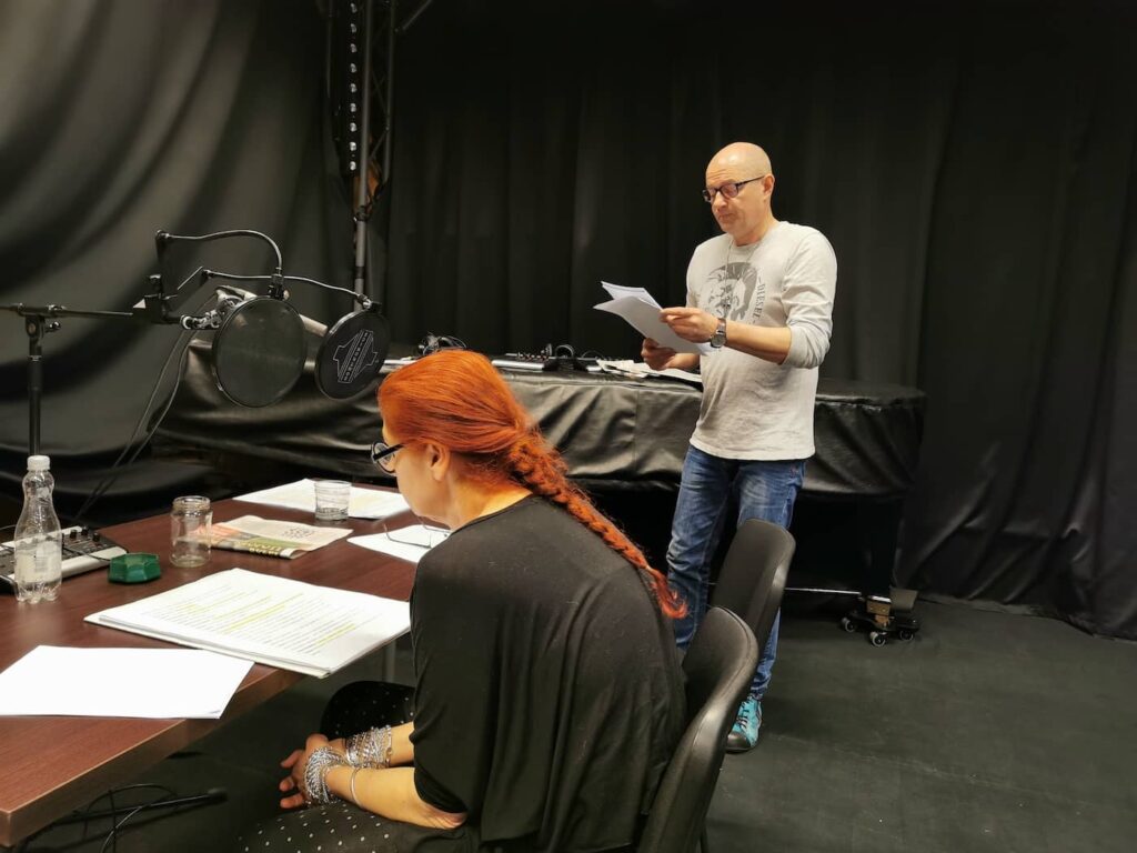 Zdjęcia z nagrań słuchowiska „Stara kobieta wysiaduje” w Polskim Radiu Rzeszów.