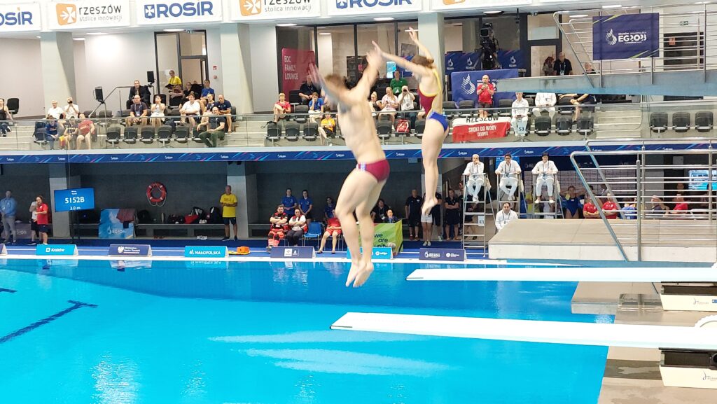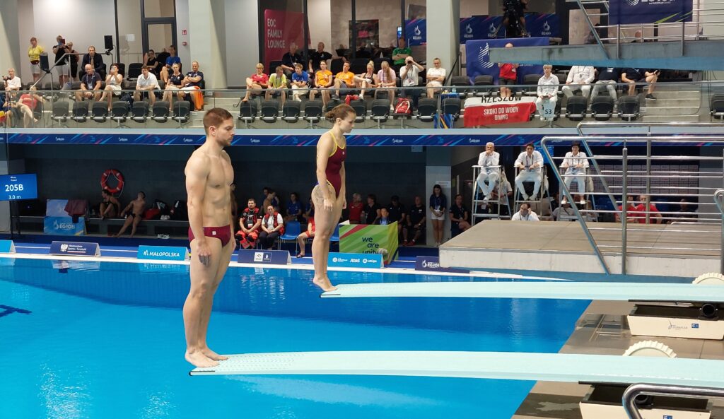 Za nami pierwszy start rzeszowskich skoczków do wody podczas Igrzysk Europejskich. W konkurencji skoków synchronicznych par mieszanych z trampoliny, nasz kraj reprezentował duet: Kaja Skrzek i Andrzej Rzeszutek. Zajęli siódme miejsce, a tak ich występ ocenia trener Andrzej Kozdrański: