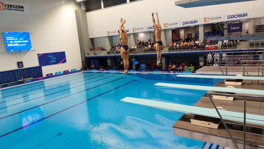 W tej konkurencji zwyciężył duet z Włoch przed Brytyjczykami i Szwedami. W sobotę na trampolinie trzy metrowej o awans do finału powalczą indywidualnie Kacper Lesiak i Andrzej Rzeszutek. Początek rywalizacji o 10:00 na basenie przy ulicy Matuszczaka w Rzeszowie.