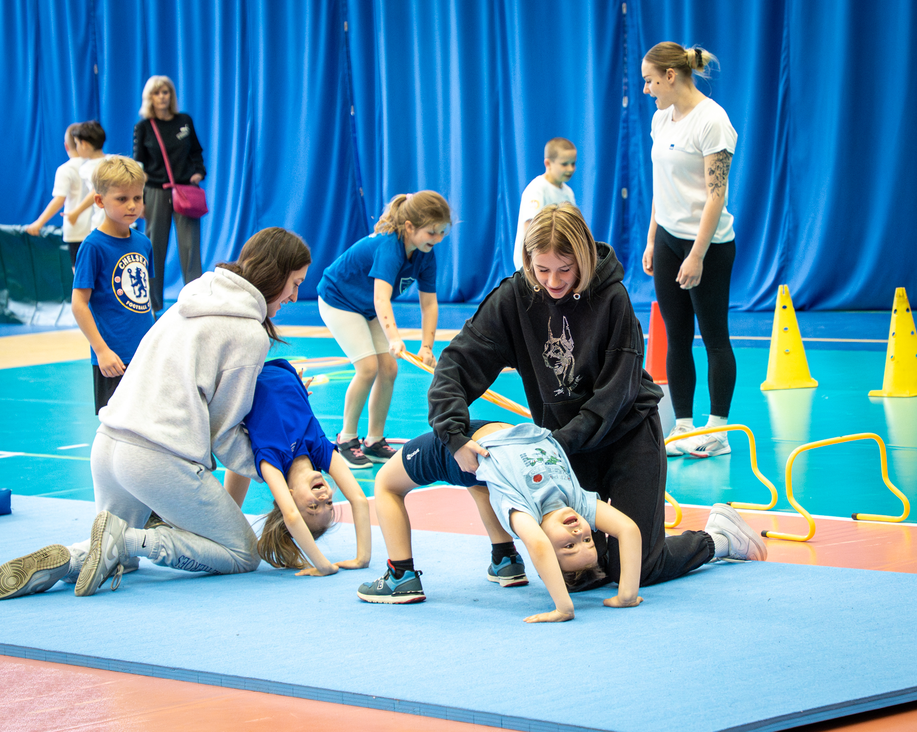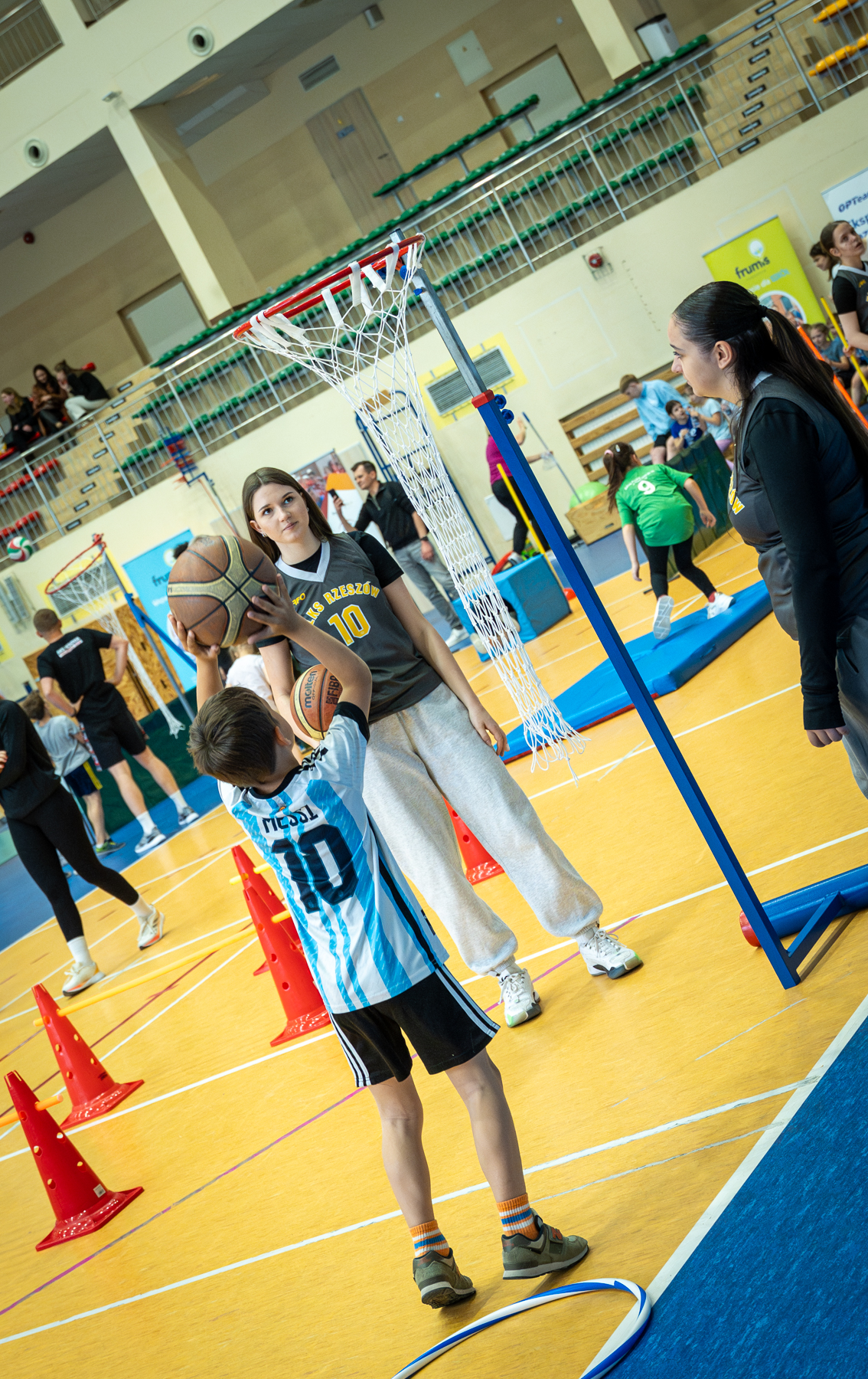 Młodzi sportowcy pokonują tory przeszkód. Dzieci wykonują umiejętności ruchowe zaczerpnięte z podstawowych dyscyplin sportowych jak koszykówka, siatkówka, piłka ręczna czy gimnastyka – informuje Paweł Lenik z Fundacji Frumis, która organizuje wydarzenie.