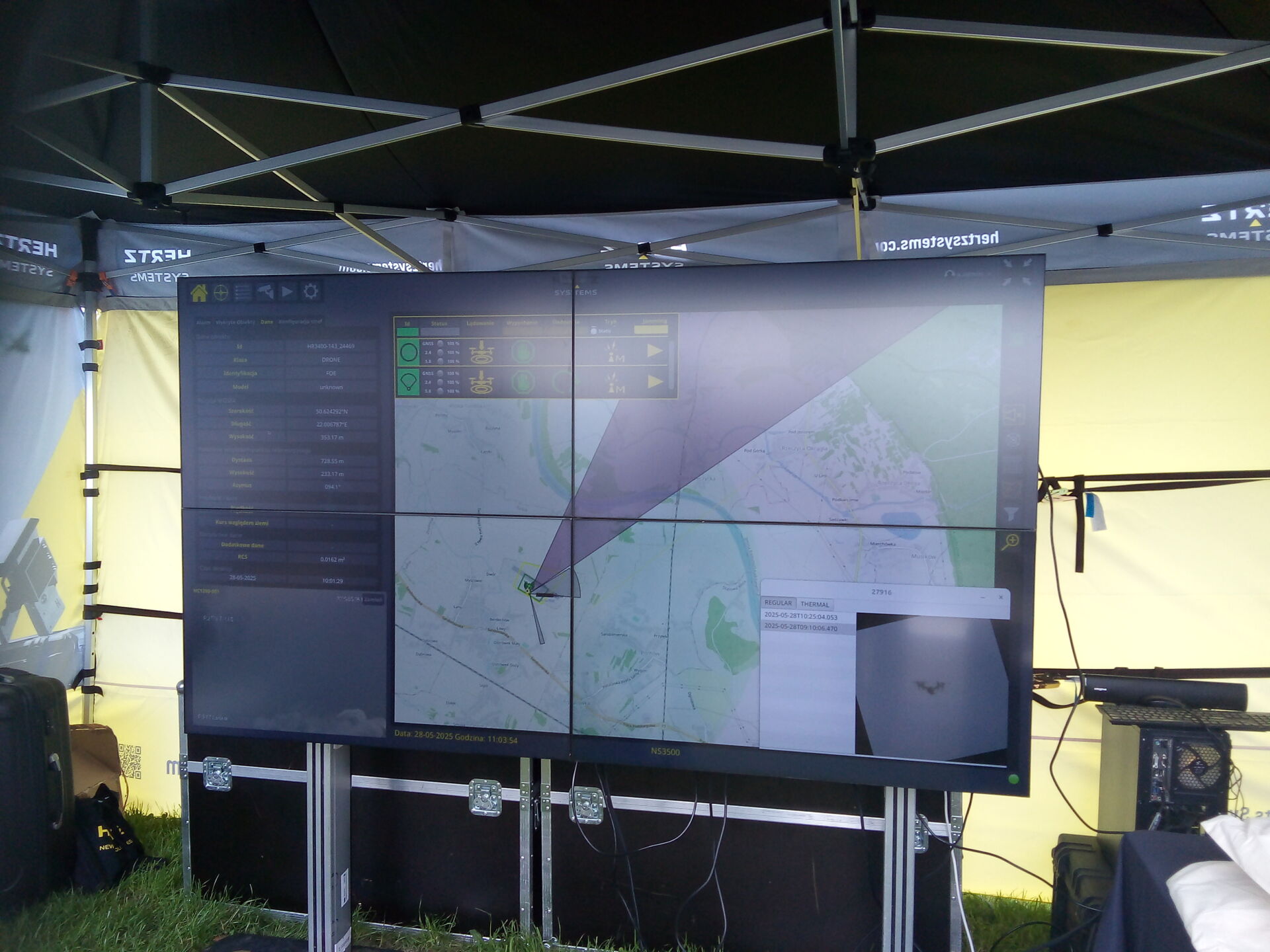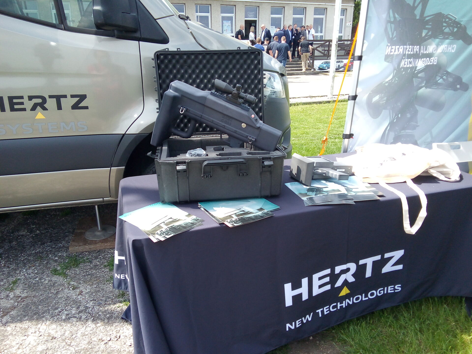 Na lotnisku w Turbi zaprezentowany dziś (środa 28.05) został nowoczesny polski system antydronowy „Hawk”, stworzony i produkowany przez firmę Hertz New Technologies z Zielonej Góry. według zapewnień przedstawicieli przedsiębiorstwa, to jedyny polski system tego typu. Charakteryzuje się m.in. wielosensorowością – czyli używaniem różnych technologii wykrywania – zarówno aktywnych, jak i pasywnych. Za ich pomocą dokonuje namierzenia drona, będącego potencjalnym zagrożeniem, a następnie neutralizuje na różne sposoby jego połączenie z operatorem, powodując bądź lądowanie urządzenia, bądź jego „wypchnięcie” poza chronioną strefę. Istnieje także możliwość strącenia wrogiego drona przez własne podobne urządzenie za pomocą zrzucanej z niego siatki.