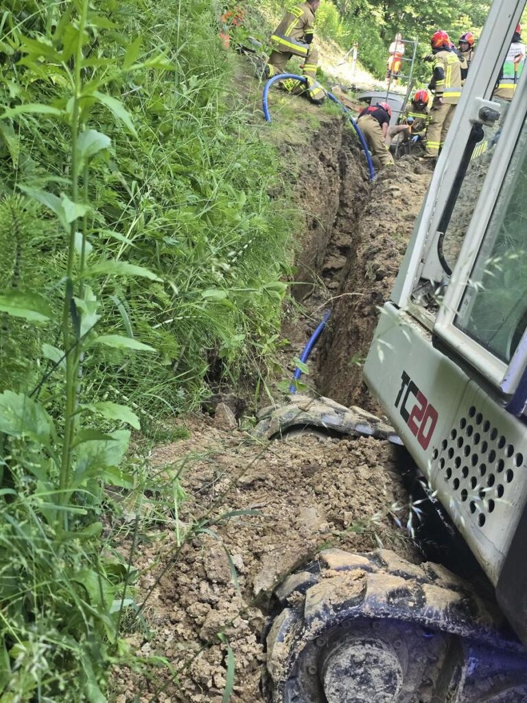 Ratownicy wydobyli mężczyznę przysypanego przez ziemię w Przysietnicy w powiecie brzozowskim. Obecnie jest pod opieką medyków – jest przytomny informuje portal Krosno 112.