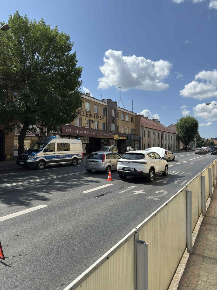 Wypadek na al. Piłsudskiego w Rzeszowie, doszło do zderzenia samochodu z motocyklem.