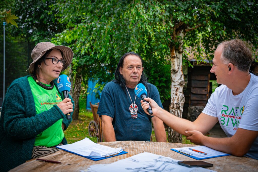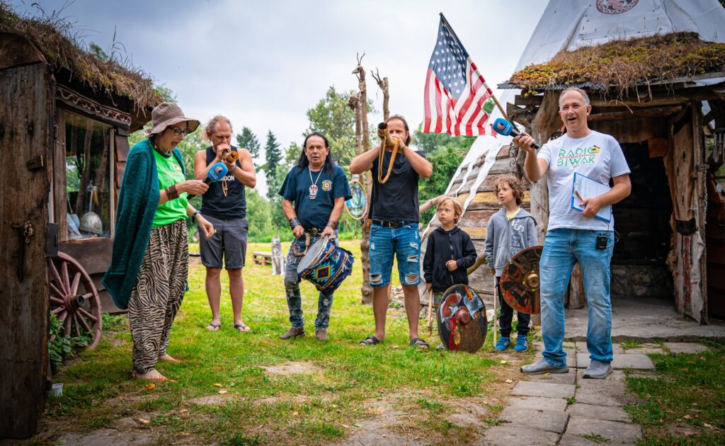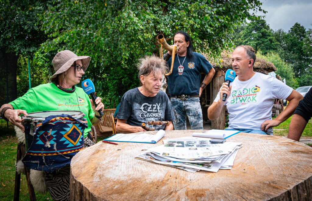 Dziś Radio Biwak gościło na osiedlu Budziwój w Rzeszowie, w miejscu, w którym artysta plastyk Krzysztof Koziołkiewicz stworzył malowniczą Osadę Wikinga. Było to ciekawe spotkanie towarzyskie, bo oprócz właściciela, pojawili się jego przyjaciele „bieszczadnicy”: Wiesław Kwaśniak, pomysłodawca projektu „Natchnieni Bieszczadem”, lider kultowego zespołu KSU Eugeniusz „Siczka” Olejarczyk i pochodzący z Rzeszowa, od wielu lat mieszkający w Miami na Florydzie Roch Kołodziej.