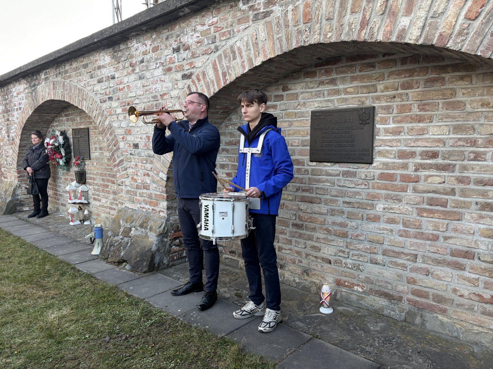 Kwiaty i znicze przy pomniku