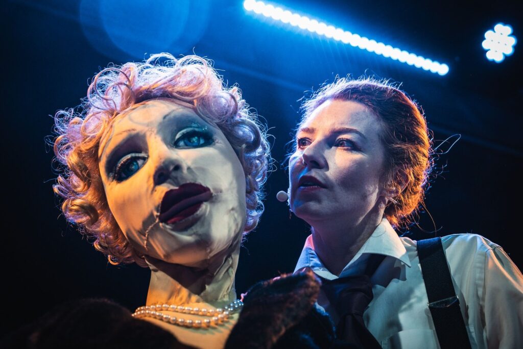 Na Scenie Teatralnej Polskiego Radia Rzeszów w niedzielę zaprezentowaliśmy monodram „Złamane paznokcie. Rzecz o Marlenie Dietrich” w wykonaniu Anny Skubik. Aktorka w sztuce kreuje dwie role: wielką damę światowego kina jako lalkę oraz jej opiekunkę Glorię.