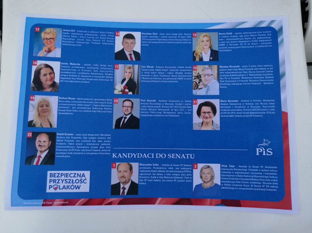 Kandydatami PiS do Senatu w tej części Podkarpacia są senatorowie tej kadencji Zdzisław Pupa oraz Janina Sagatowska – odpowiednio w okręgach nr 54 i 55 oraz starosta rzeszowski Józef Jodłowski w okręgu nr 56.