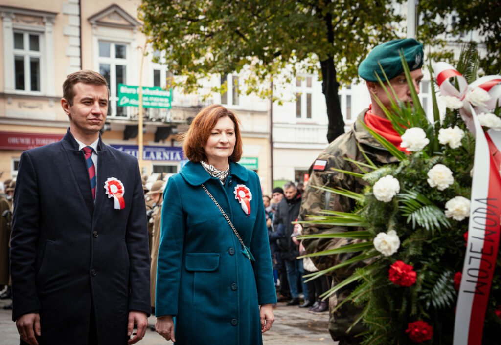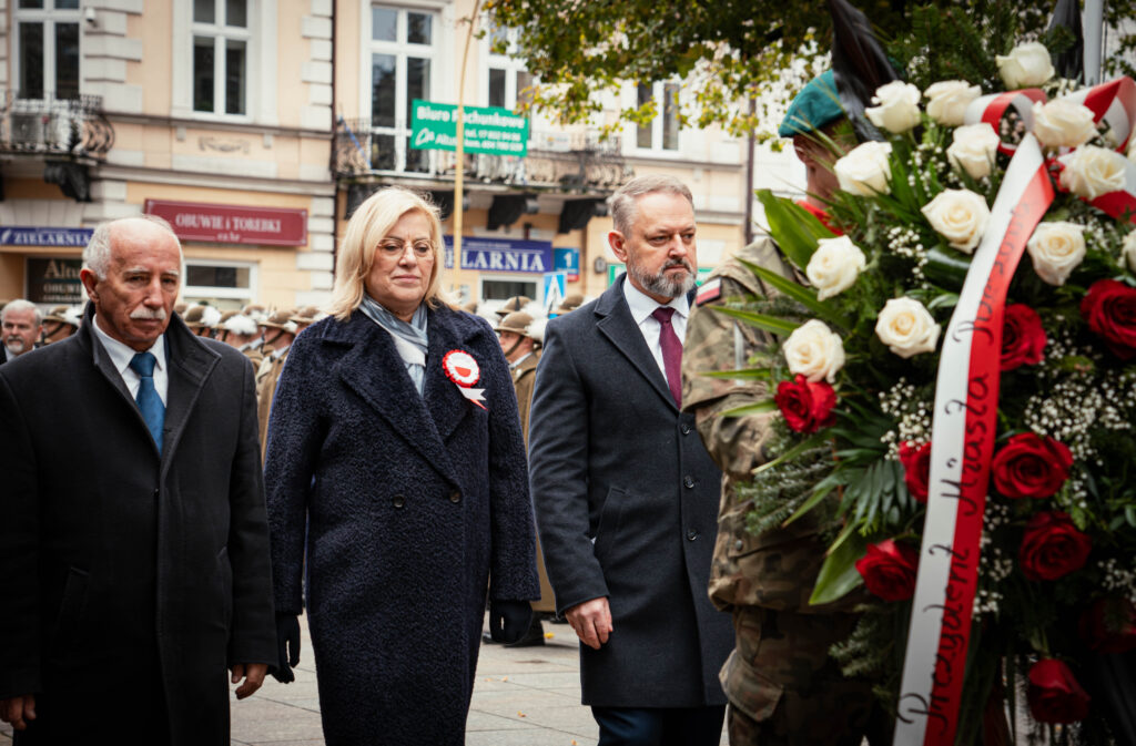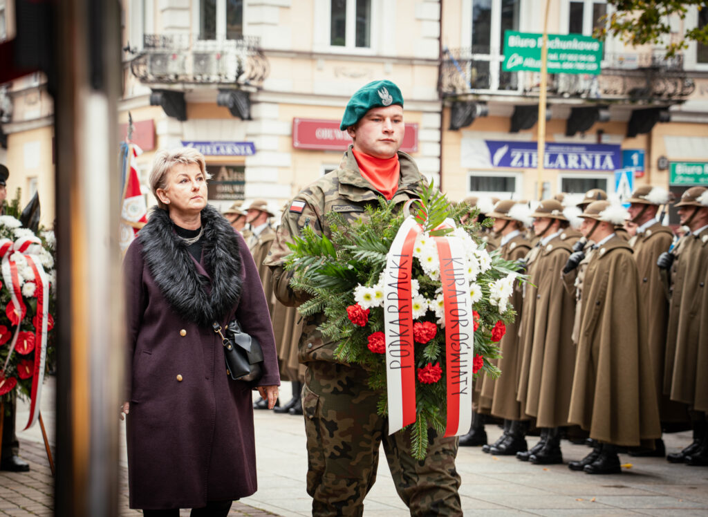 Pod pomnikiem Józefa Piłsudskiego na Placu Wolności w Rzeszowie odbyły się dziś oficjalne wojewódzkie obchody Święta Niepodległości na Podkarpaciu.