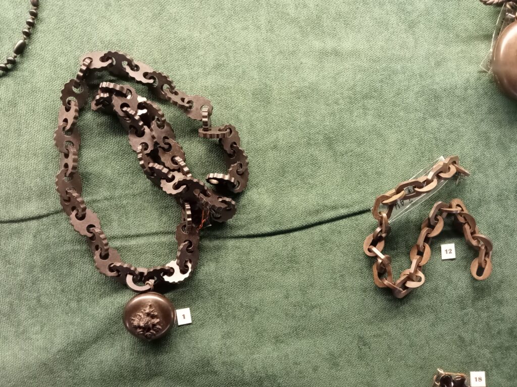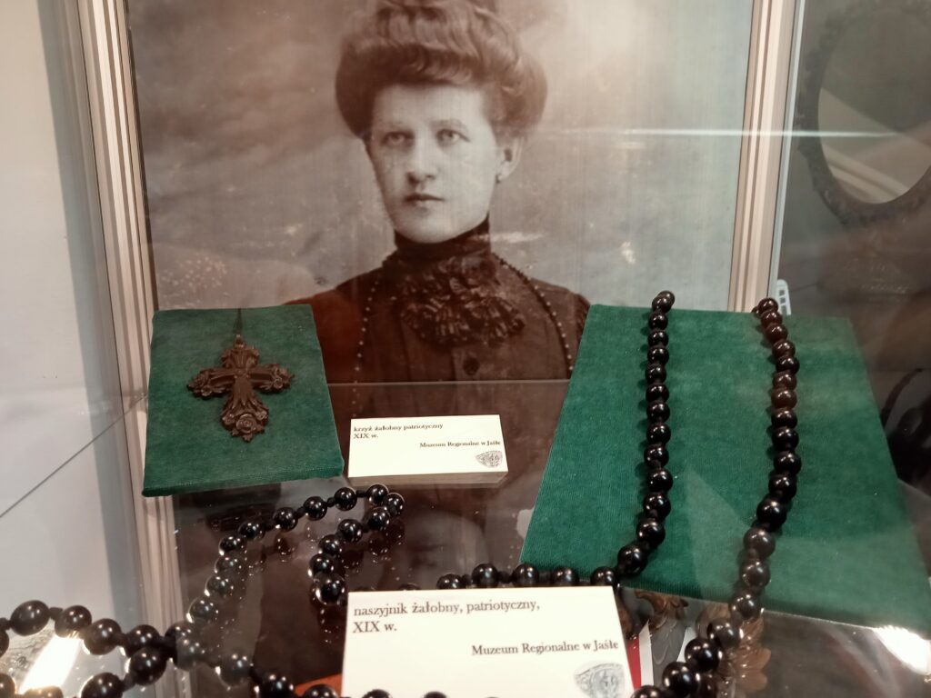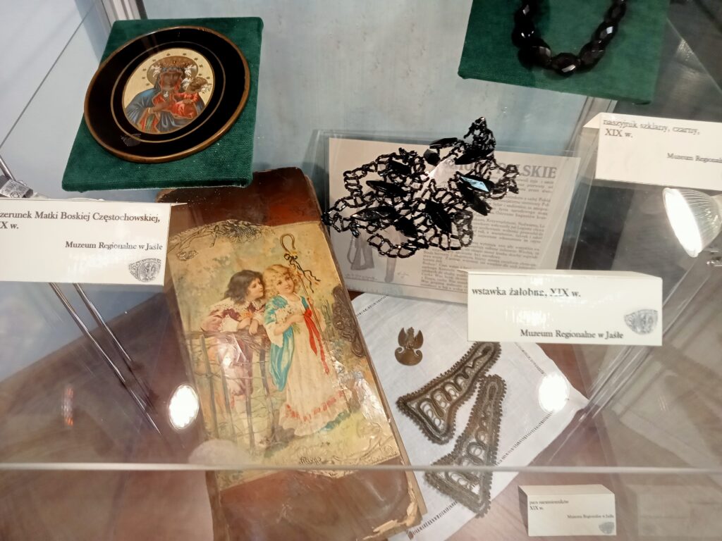 Na wystawie zaprezentowano m.in. korale, bransolety i obrączki z czarną emalią, mające ukazywać żałobę narodową w obliczu klęsk kolejnych powstań narodowych. To także powszechnie noszone wówczas czarne dodatki do strojów.