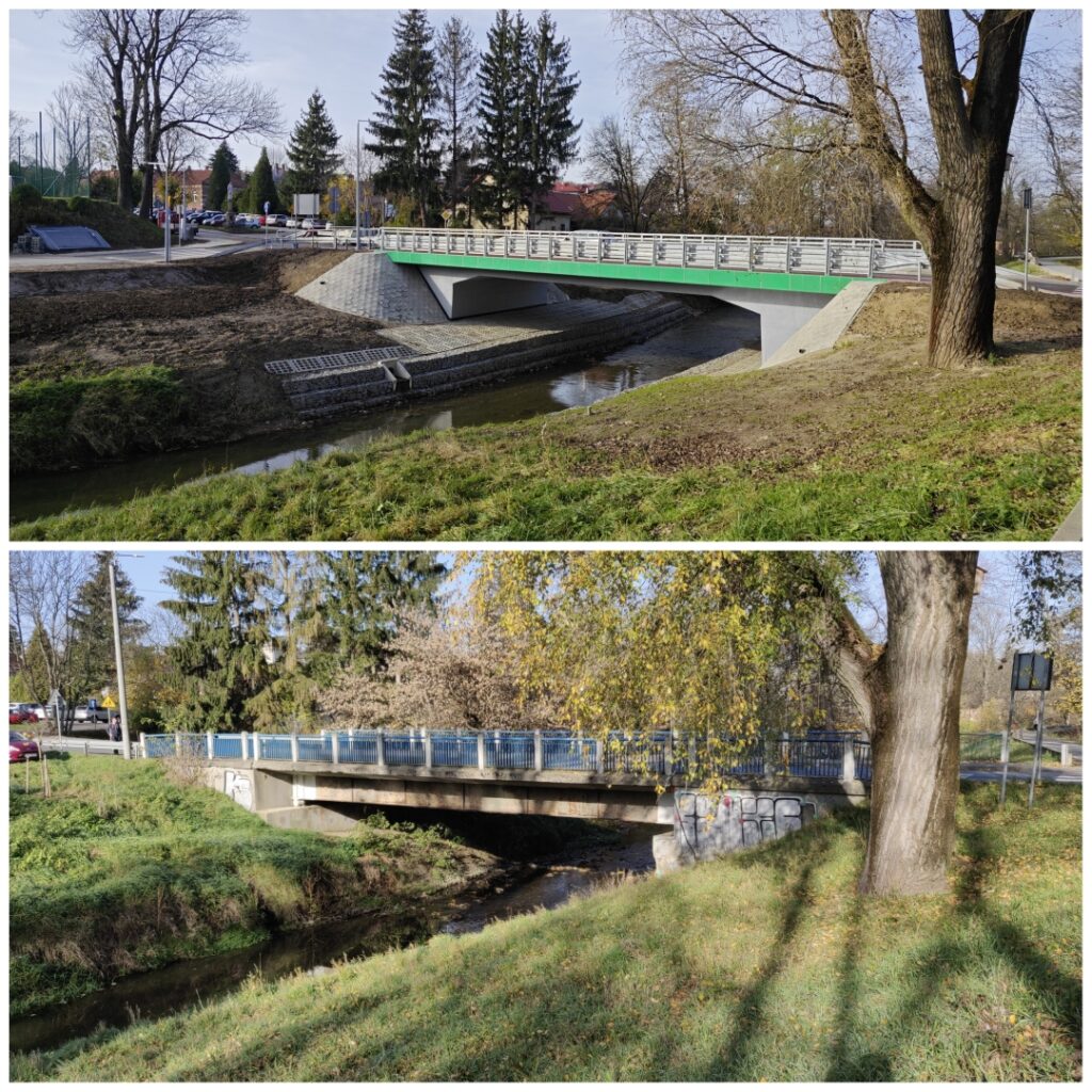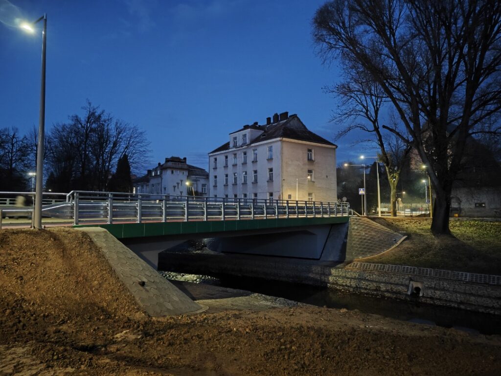 Poprzednia przeprawa, która znajdowała się w tym miejscu, została rozebrana. Prace trwały niepełna rok, od połowy grudnia 2022. Pierwotnie zapowiadano, że inwestycja zakończy się pod koniec października, ale pojawiły się problemy techniczne i prace nieco się przedłużyły. Obejmowały nie tylko sam most, ale też rozbudowę ulicy Paderewskiego od ronda na ul. Podwale do boiska przy Zespole Szkół Muzycznych, budowę nowego ciągu pieszo-rowerowego na odcinku nieco ponad 100 m i przebudowę skrzyżowania z ul. Nad Lubatówką.
