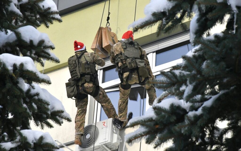 Policyjni „komandosi” wzięli dziś udział w szczególnej akcji. Rzeszowscy kontrterroryści, jako pomocnicy św. Mikołaja, odwiedzili Kliniczny Szpital Wojewódzki Nr 2 w Rzeszowie. Zjeżdżali z dachu na linach, żeby przekazać dzieciom mikołajkowe prezenty.