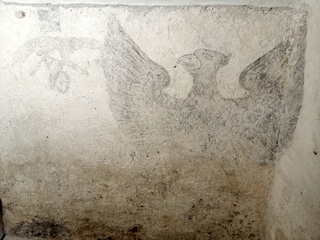 Więźniowie zostawili na ścianach m.in. swoje nazwiska i daty, są także rysunki np. orła, czołgu czy samolotu. W szczelinach ścian odnaleziono też wiele nadpalonych zapałek, które prawdopodobnie służyły do wykonywania rysunków. W jednej z cel były też poupychane między cegłami fragmenty gazet, ale nie wiadomo dlaczego tam się znalazły.