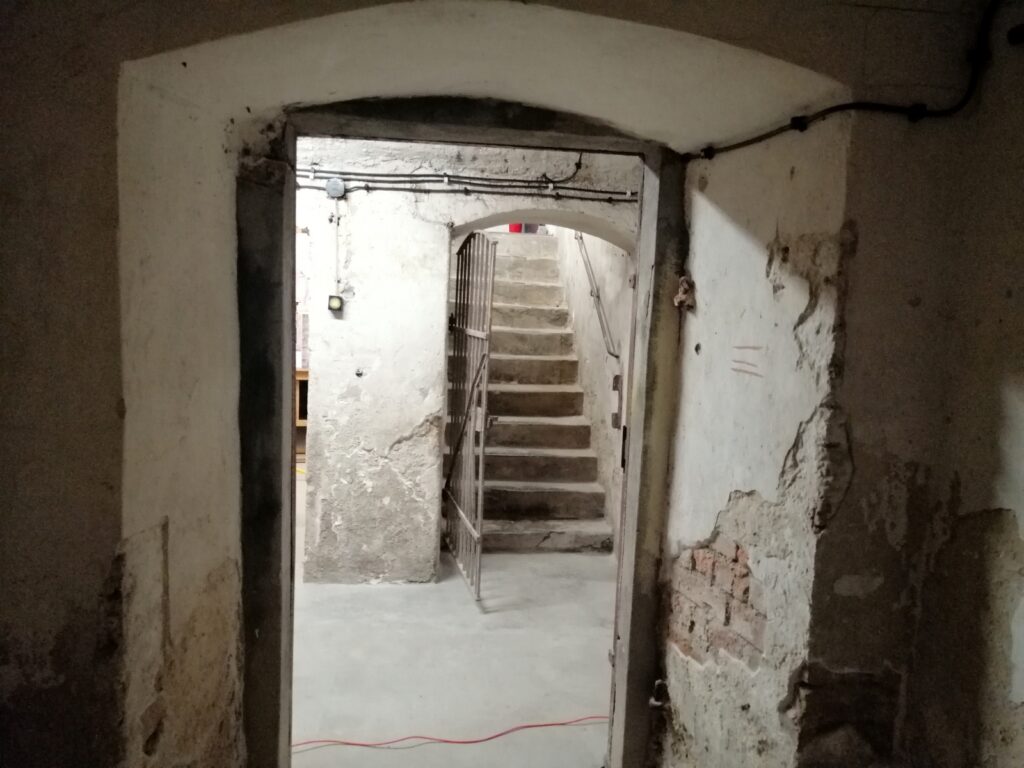 W budynku przy ul. Portiusa 4 podczas wojny była siedziba Gestapo, w czasach stalinowskich UB, a potem Milicji i SB. W piwnicach było więzienie, a potem areszt. Od dwóch lat prowadzone są tam prace konserwatorskie.