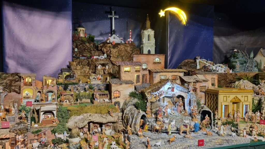 Szopka ma elementy przemyskie – wieżę katedralną, Zamek Kazimierzowski, stok narciarski, Dworzec Kolejowy w Przemyślu, na którego peron wjeżdża pociąg. Wśród trzydziestu ruchomych elementów szopki sześć napędzanych jest wodą. Kilkadziesiąt punktów świetlnych i nastrojowa muzyka tworzą niezapomniany klimat.