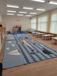 Nowa sala zabaw została wyposażona w bezpieczne zabawki. Do dyspozycji najmłodszych, jest również zewnętrzne patio z placem zabaw. Po otwarciu nowego oddziału w publicznym żłobku w Krośnie będą łącznie 272 miejsca dla maluchów.