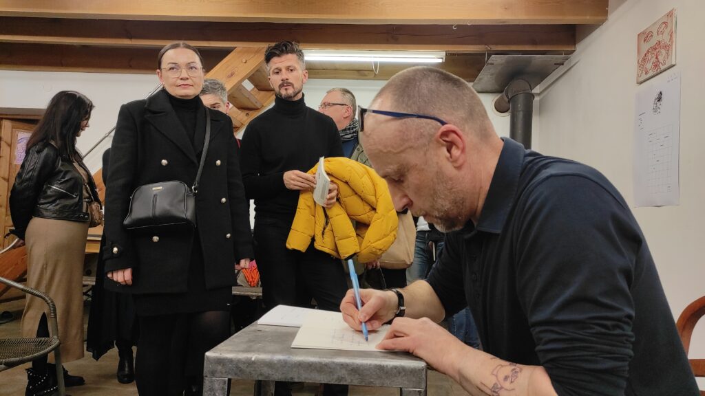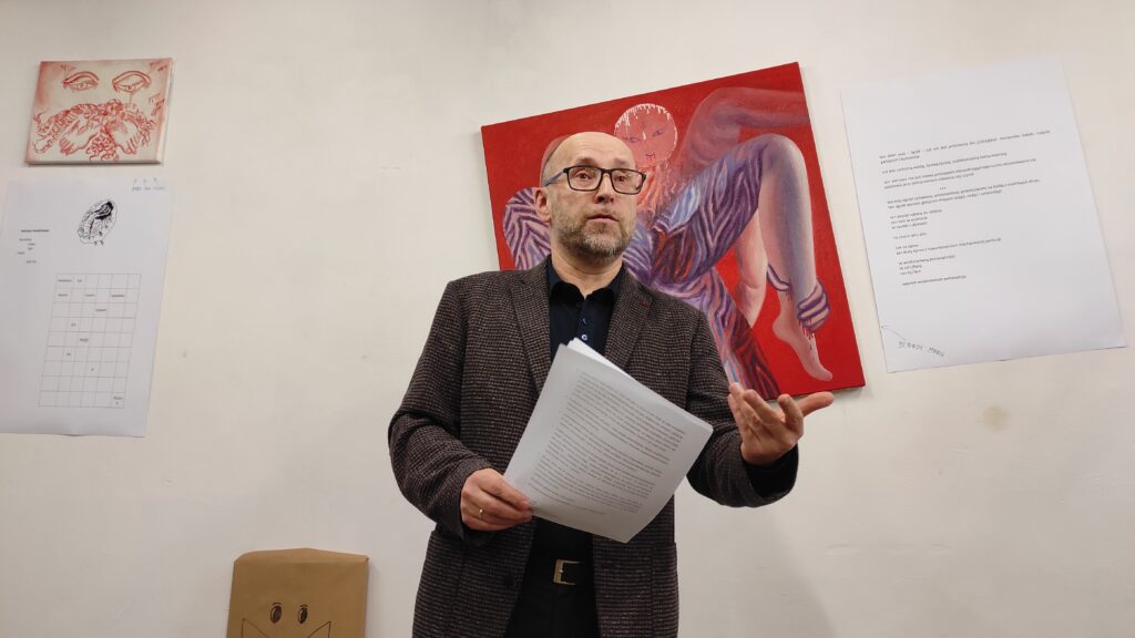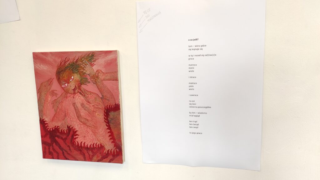Sytuacyjna Grupa Eksperymentalna, czyli Małgorzata Wielek, malarka, tatuatorka oraz Mariusz Kalandyk, poeta i krytyk literacki zaprezentowali malarsko-poetyckie zajście performatywne.