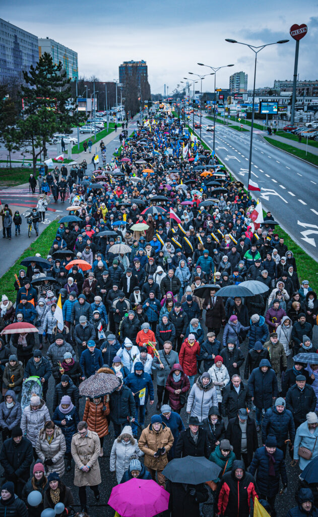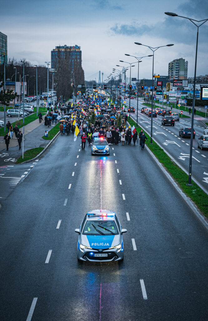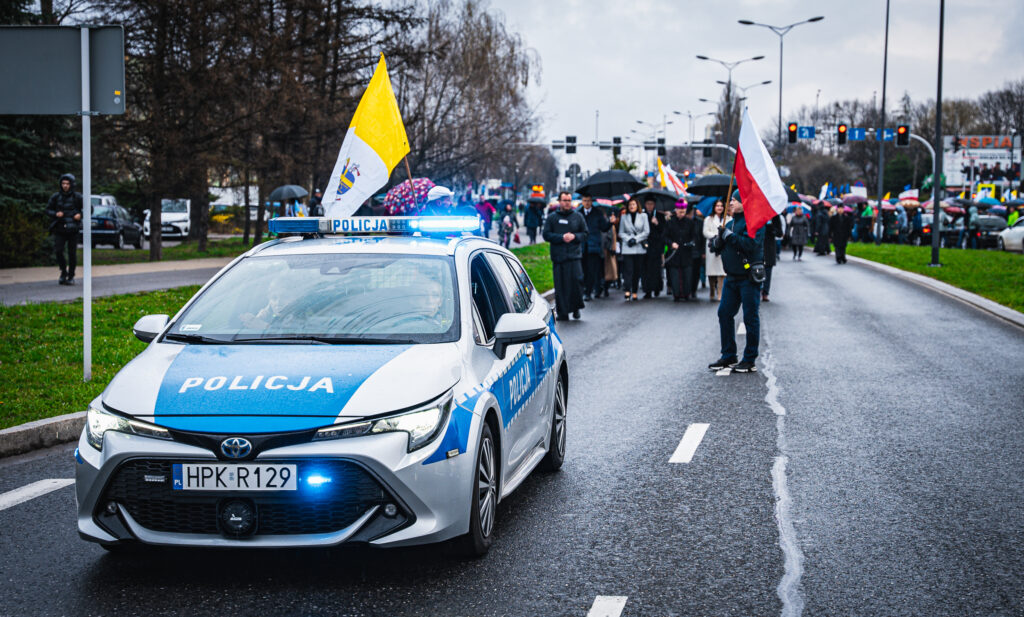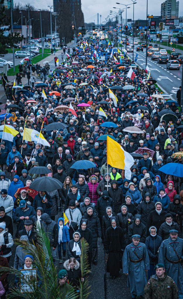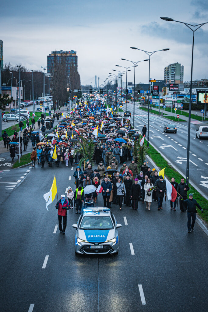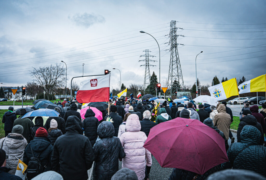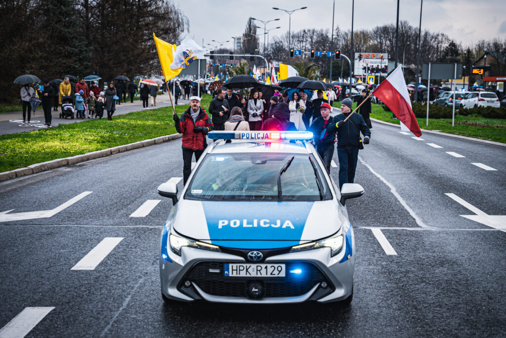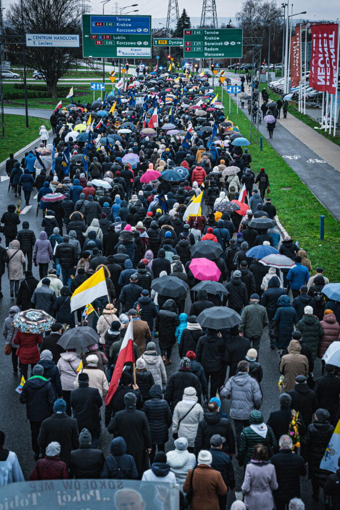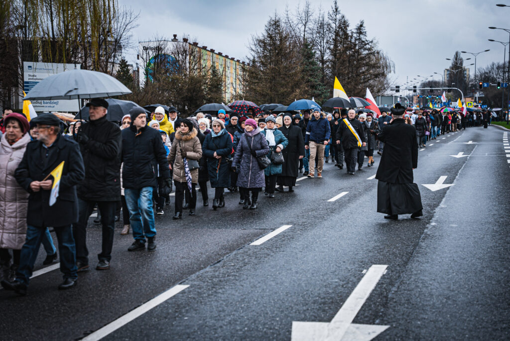 Uczestnicy wydarzenia w Rzeszowie trzymali flagi w barwach narodowych i watykańskich oraz chorągiewki i obrazki z wizerunkiem Jana Pawła II. W trakcie pochodu zmówili różaniec w intencji ojczyzny.