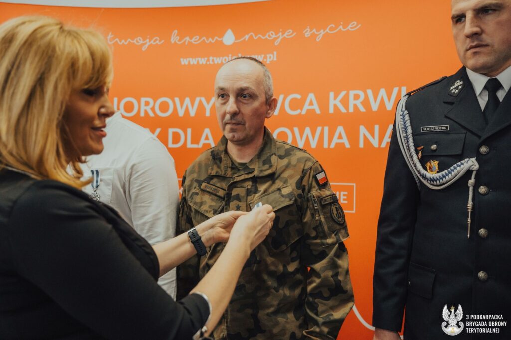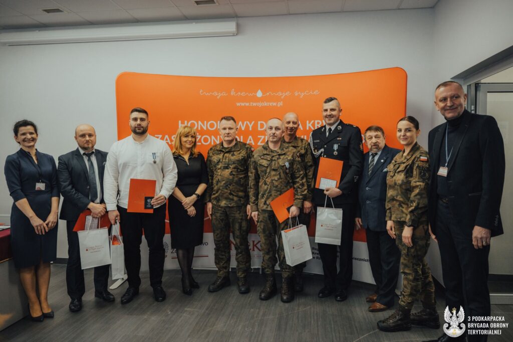Żołnierze z 3 Podkarpackiej Brygady Obrony Terytorialnej odebrali państwowe odznaczenia „Honorowy Dawca Krwi – Zasłużony dla Zdrowia Narodu”. W uroczystości wręczenia medali wzięli udział m.in.: płk Michał Małyska, dowódca 3 PBOT oraz ppłk Mirosław Szpunar, dowódca 32 batalionu lekkiej piechoty w Nisku.