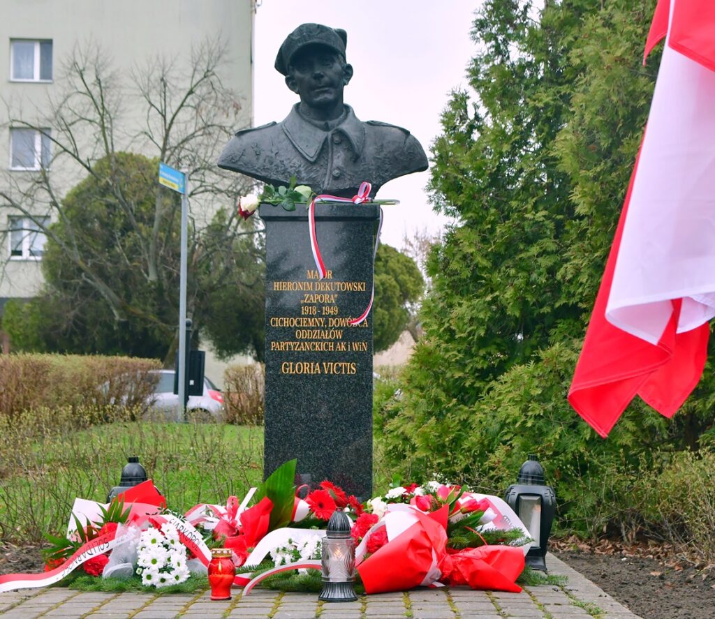 Następnie w godzinach popołudniowych kolejna lekcja historii, szczególnie dla młodych ludzi miała miejsce pod popiersiem najbardziej znanego tarnobrzeskiego Niezłomnego, majora Hieronima Dekutowskiego ps. „Zapora”. Kilka słów o bohaterze, urodzonym w tarnobrzeskim Dzikowie powiedział historyk Tadeusz Zych. Profesor Uniwersytetu Rzeszowskiego, powiedział że to był jeden z najdzielniejszych żołnierzy niezłomnych i można go zaliczyć do grona najwaleczniejszych żołnierzy tzw. drugiego podziemia niepodległościowego.
